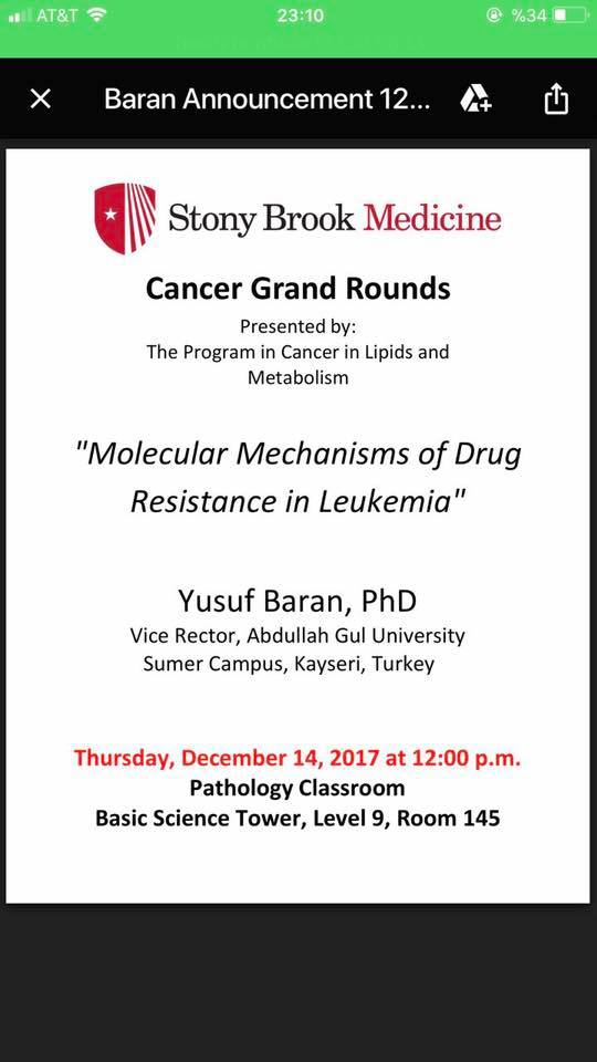 ÇOK DEĞERLİ YUSUF BARAN HOCAMIZ ''AMERİKA'DA, STONY BROOK MEDICINE (TIP FAKÜLTESİ) DEKİ KONFERANSI İLE TÜRK BİLİM İNSANININ SESİNİ DÜNYAYA DUYURMUŞTUR.